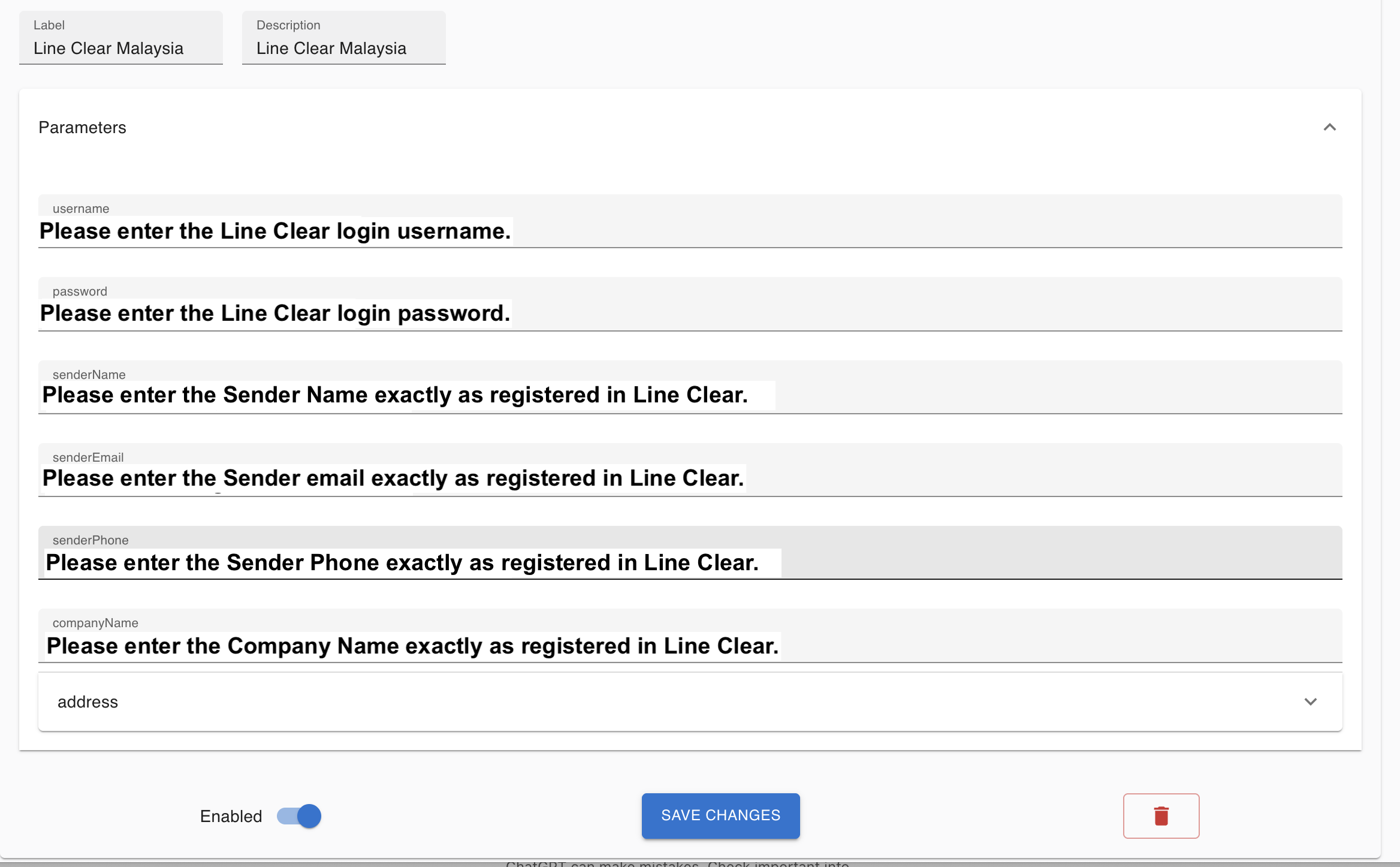 - Click into Address & fill up the address exactly as registered in Line Clear.