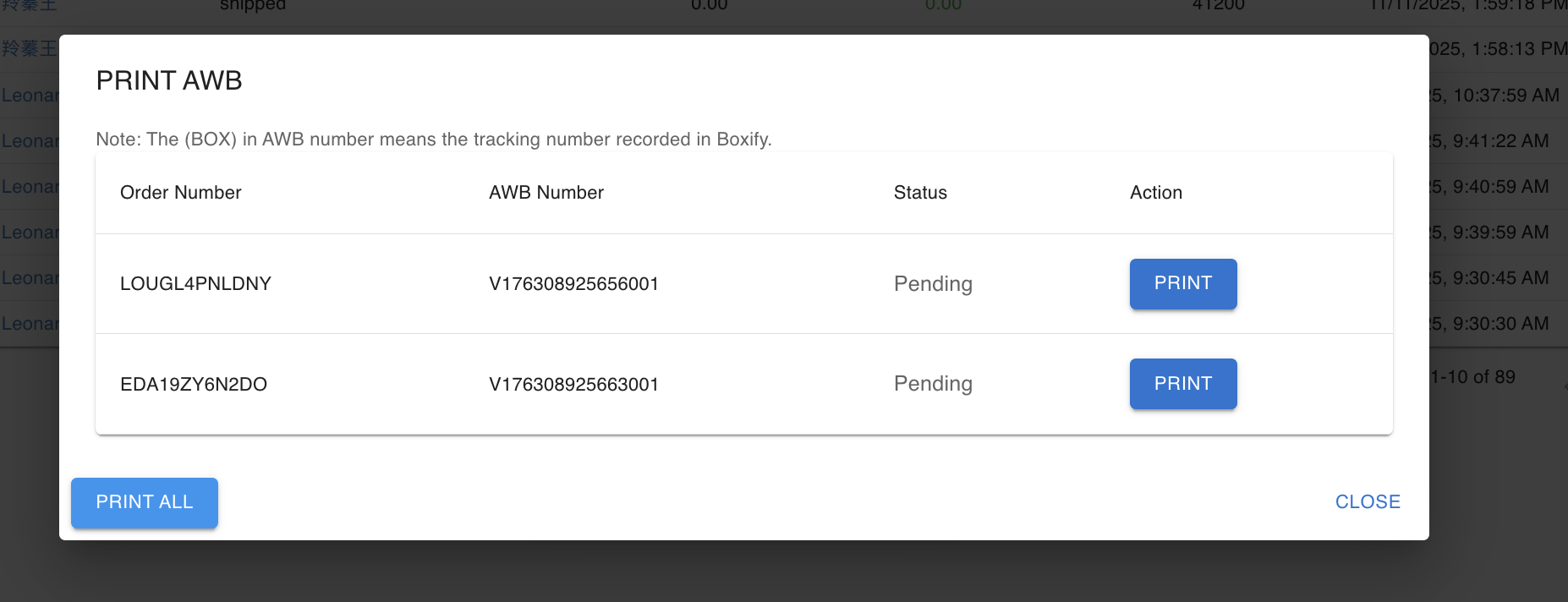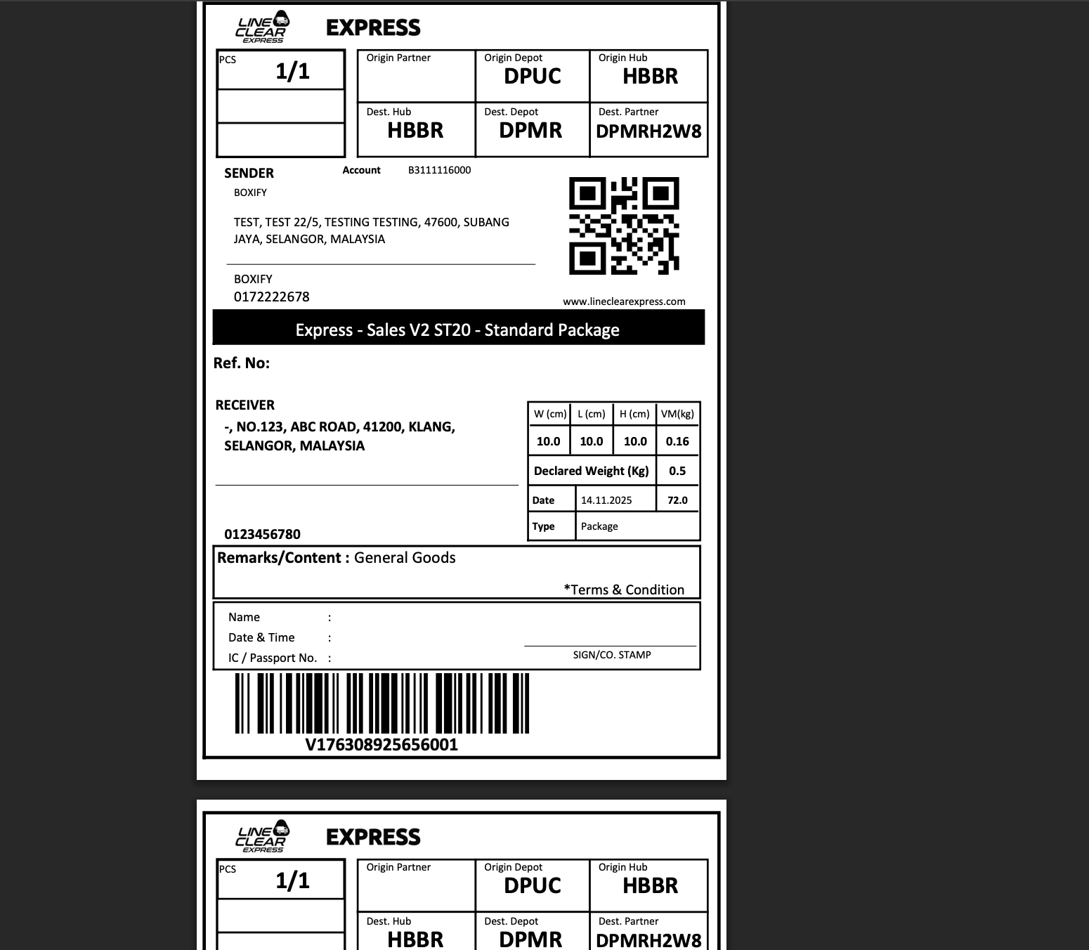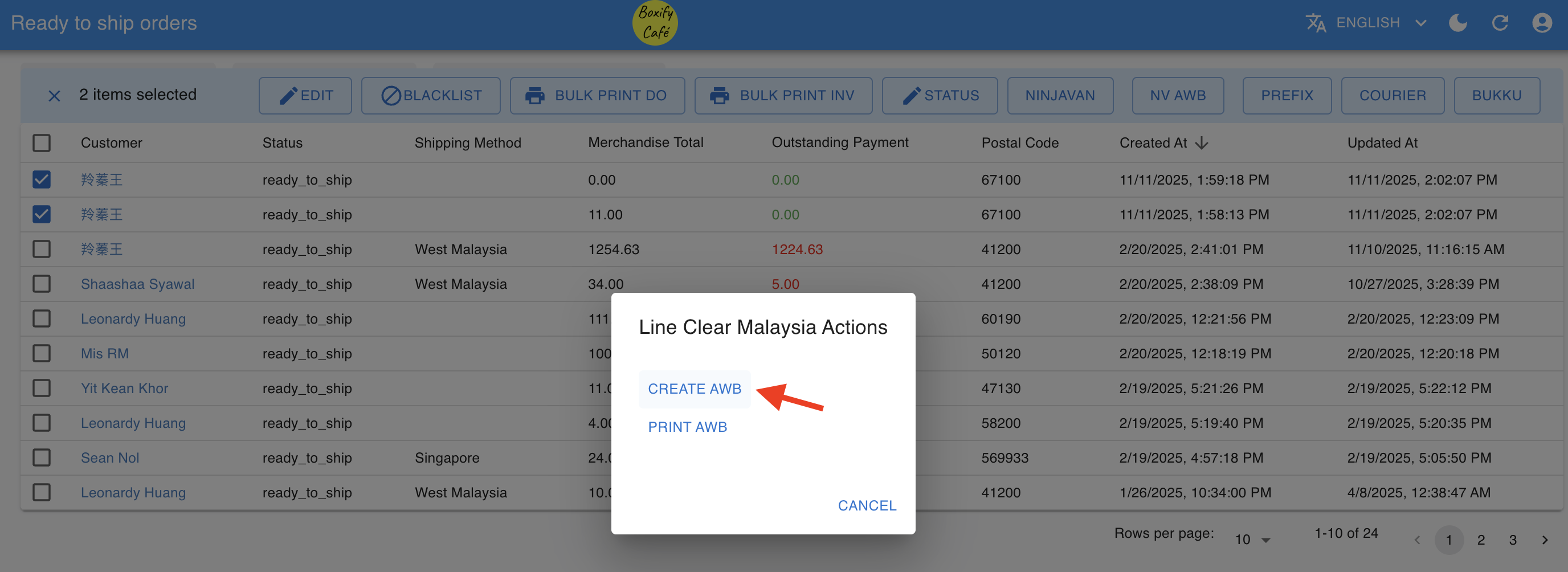 Section titled “Create AWB”- Send Boxify’s orders to Line Clear MALAYSIA to create an AWB.