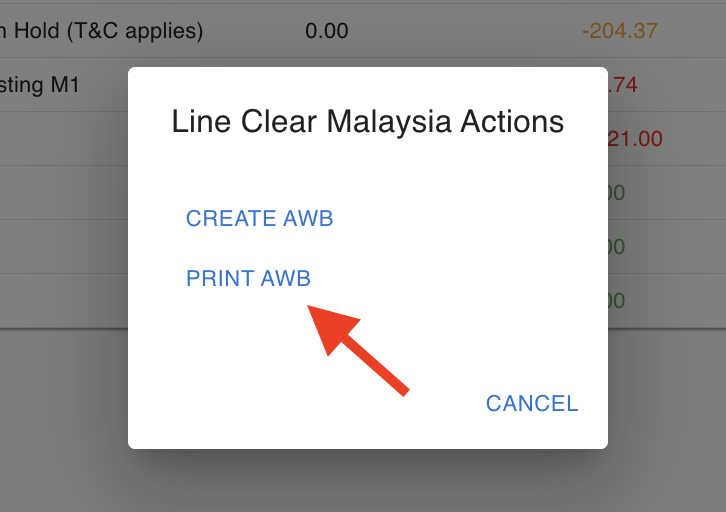 Section titled “Print AWB”After the airwaybill is successfully created, you may select “Print AWB” to print it.